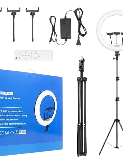 | Contents | Ring light, tripod, remote, phone holder, bag, battery |